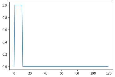 plt.plot(onsets) #, title ('simulated stimulus onsets, every 11 scans')